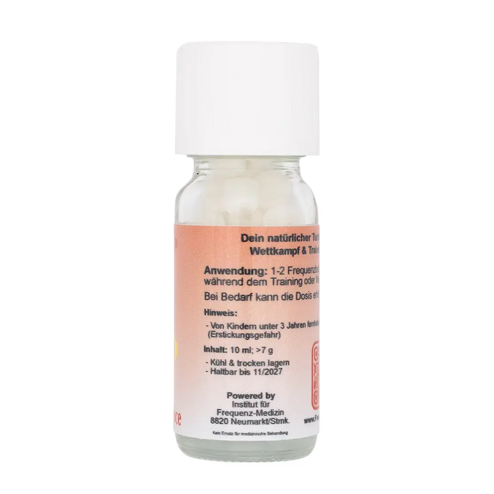 1–2 FrequenzPower® SPORT Globuli vor oder während des Trainings ein. Die Dosierung kann je nach Ihren individuellen Bedürfnissen und der Intensität der Trainingseinheit erhöht werden.